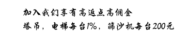 主要从事吊塔,施工电梯,滚筒筛砂机,震动筛沙机维修,安装,租赁,销售,咨询等服务。公司产品主要用于房地产开发,路桥施工,搅拌站,沙石料场进行物料的垂直运输和骨粒料,粉状料的筛选、分离。